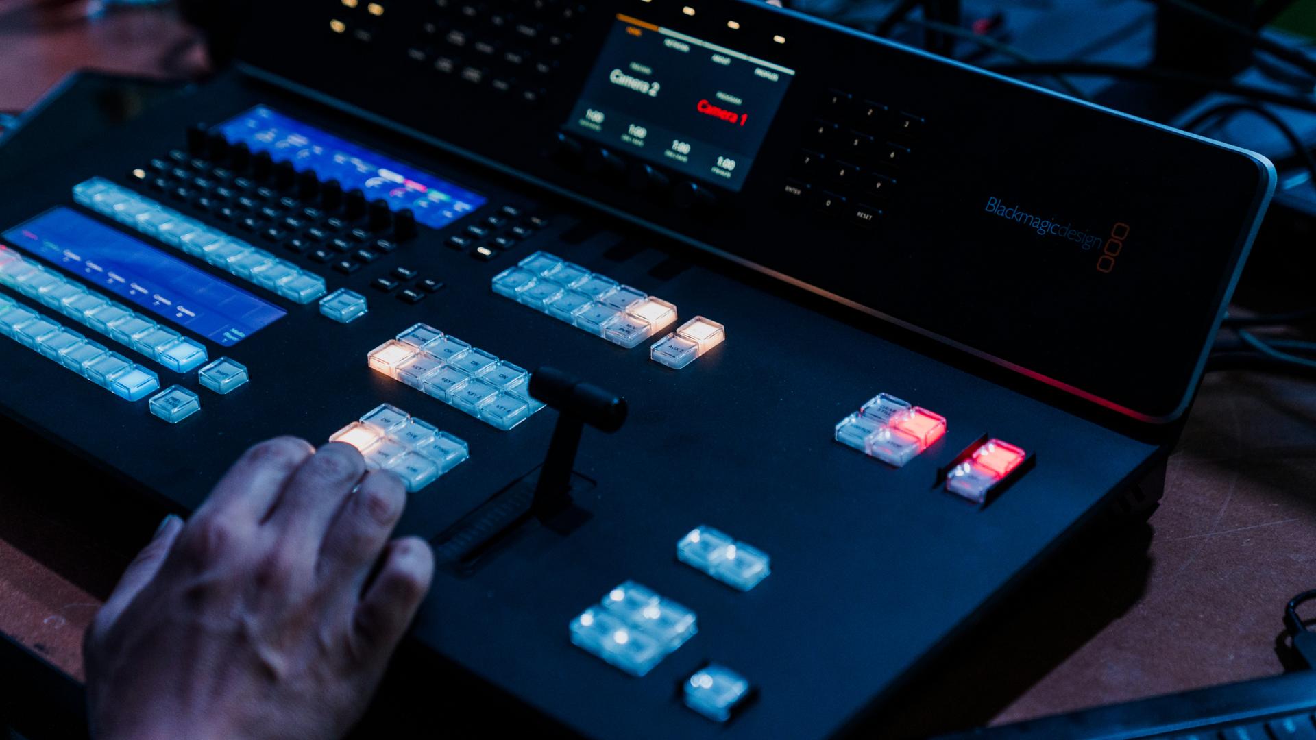 Blackmagic URSA Broadcast G2 and Blackmagic Studio Cameras handled the capture, while ATEM Television Studio HD8 ISO switchers powered vision mixing for both IMAG projection and streaming. Footage was either recorded straight to a Blackmagic Cloud Store Mini 16TB over 10Gb Ethernet or handed to a DIT via SSDs.