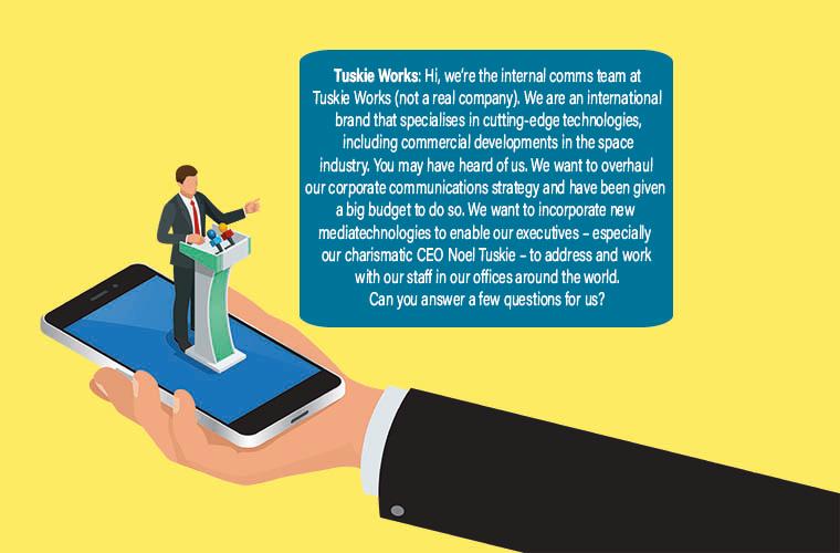 This month, a (hypothetical) space technology company we’re calling “Tuskie Works” asks our experts how to create an internal video channel and use video to boost morale, productivity and even loyalty