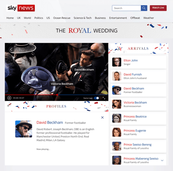 For the marriage of Harry and Meghan, Sky News leveraged the power of artificial intelligence to create a live-streaming app which allowed viewers to identify the wedding guests and participants in real time.