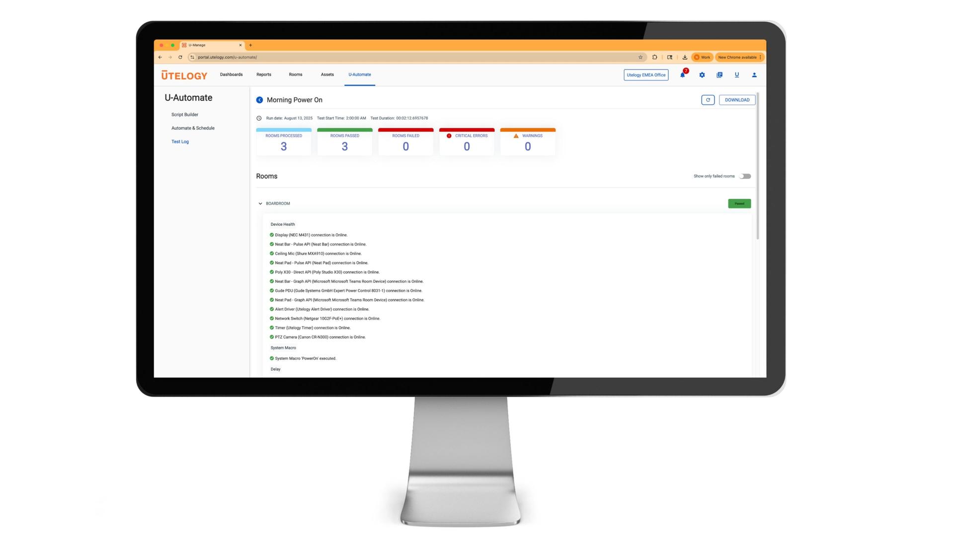 Utelogy’s management portal, U-Manage, provides enterprise-wide visibility to rooms, equipment, issues, performance and usage